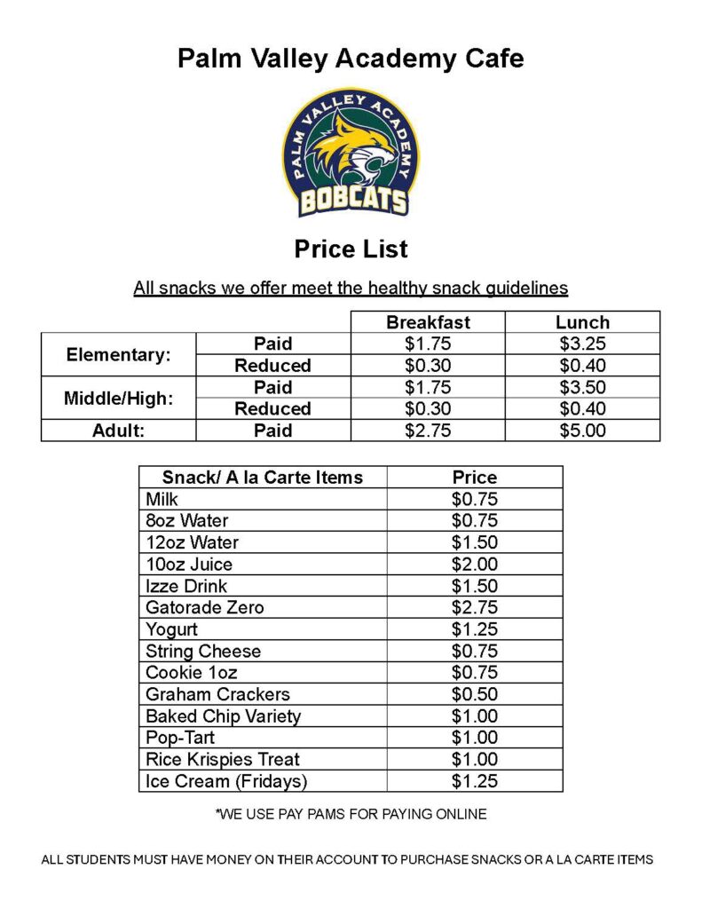 2025-2026 Welcome Back – PVA Cafeteria Information